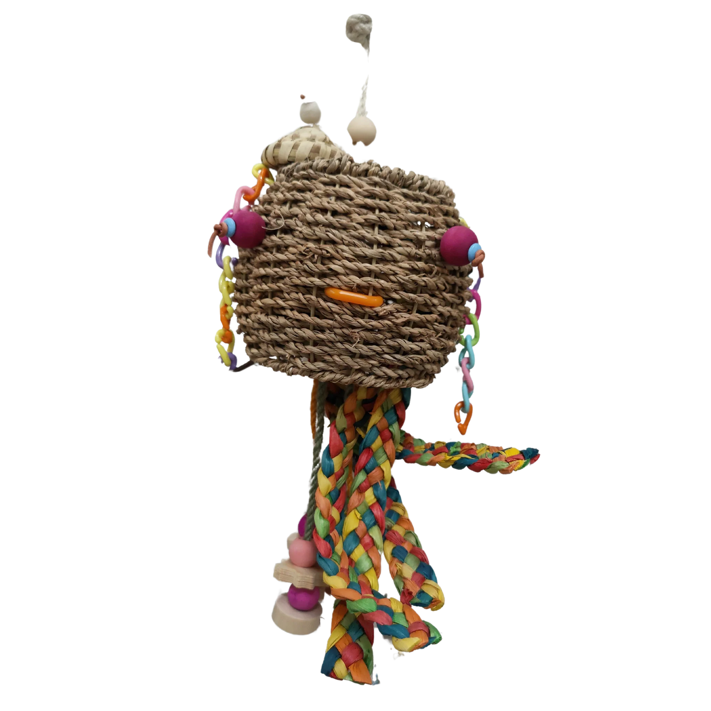 The Cool Octopus Bird Toy is a delightfully quirky and enriching toy crafted from all-natural materials. With a charming octopus shape featuring a little hat, dangling legs, and plastic chain “hair,” it’s sure to catch the eye of your curious companion. Its bead eyes and playful beaded mouth bring personality to every peck and tug.