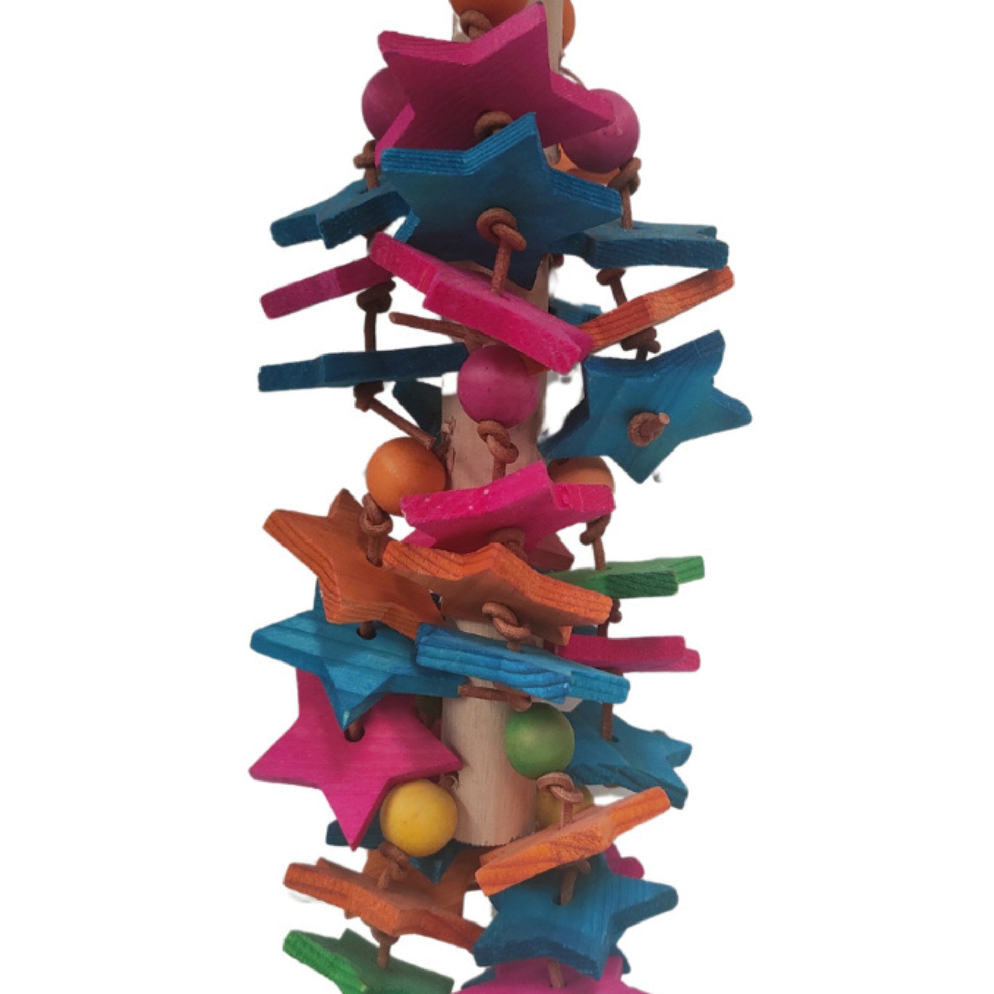 The Falling Stars Bird Toy is a chewable, colourful enrichment toy made to stimulate, engage, and entertain. Whether they’re pulling leather cords, chewing on stars, or climbing the poles, this toy will keep them active and happy.